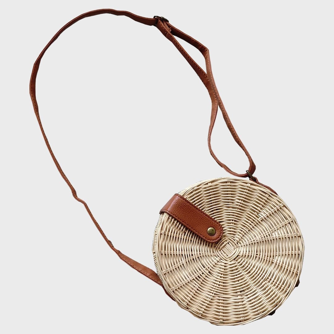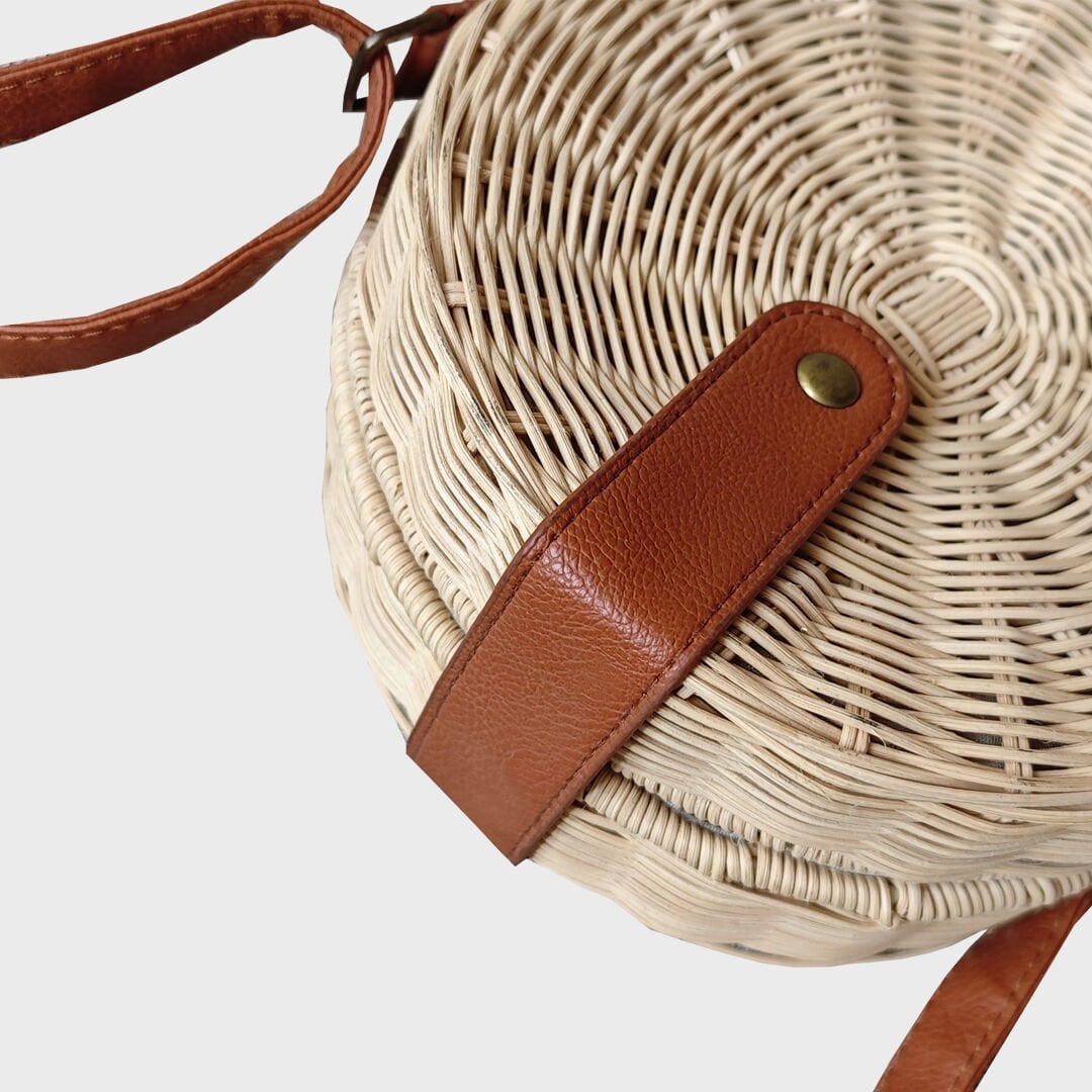 Rattané Yuvarlak El Yapımı Rattan Çanta